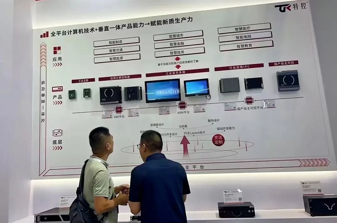 此次工博會,特控也緊扣“工業(yè)聚能 新質領航”的主題,通過橫向的全場景計算機技術解決方案與縱向的垂直一體化服務賦能新質生產力。橫向方面,根據客戶的應用場景,基于全平臺的計算機技術:X86架構、ARM架構、國產化平臺進行產品研發(fā);縱向方面,擁有從板卡到整機系統(tǒng)的完全自主研發(fā)和靈活定制能力,包括原理圖設計、PCB Layout設計、散熱設計、結構設計、SI仿真、BIOS開發(fā)設計和驅動開發(fā)能力等,為客戶產品質量和品牌提供保障,幫助客戶在最短時間把產品推向市場。